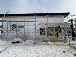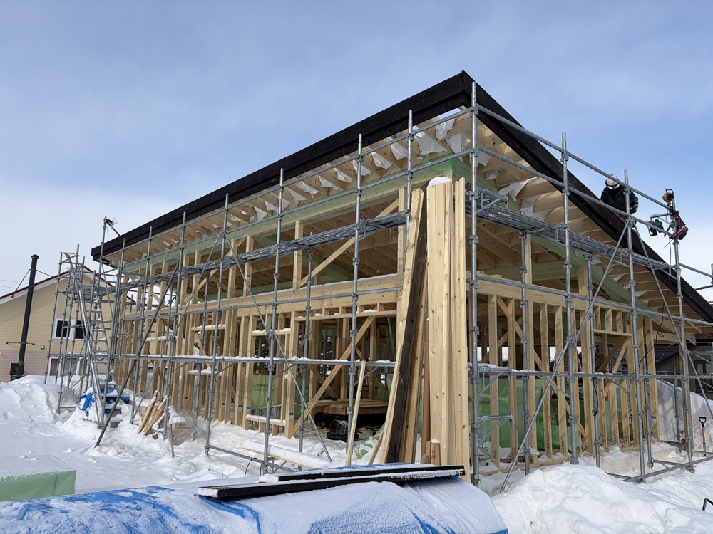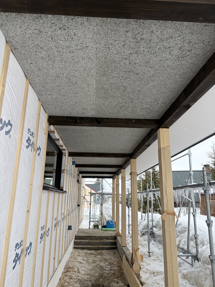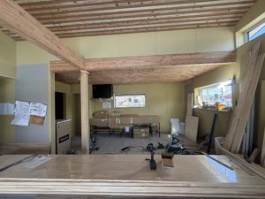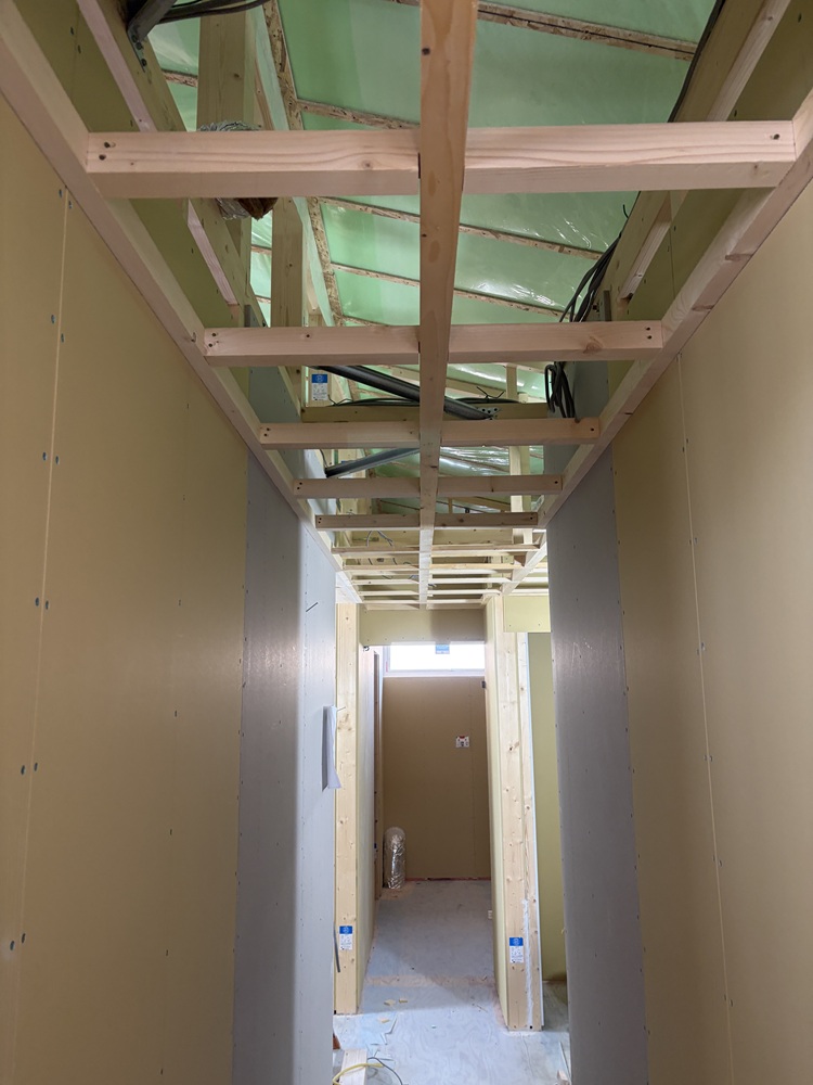 内部の壁ができてきました。天井ボード張りにとりかかります。